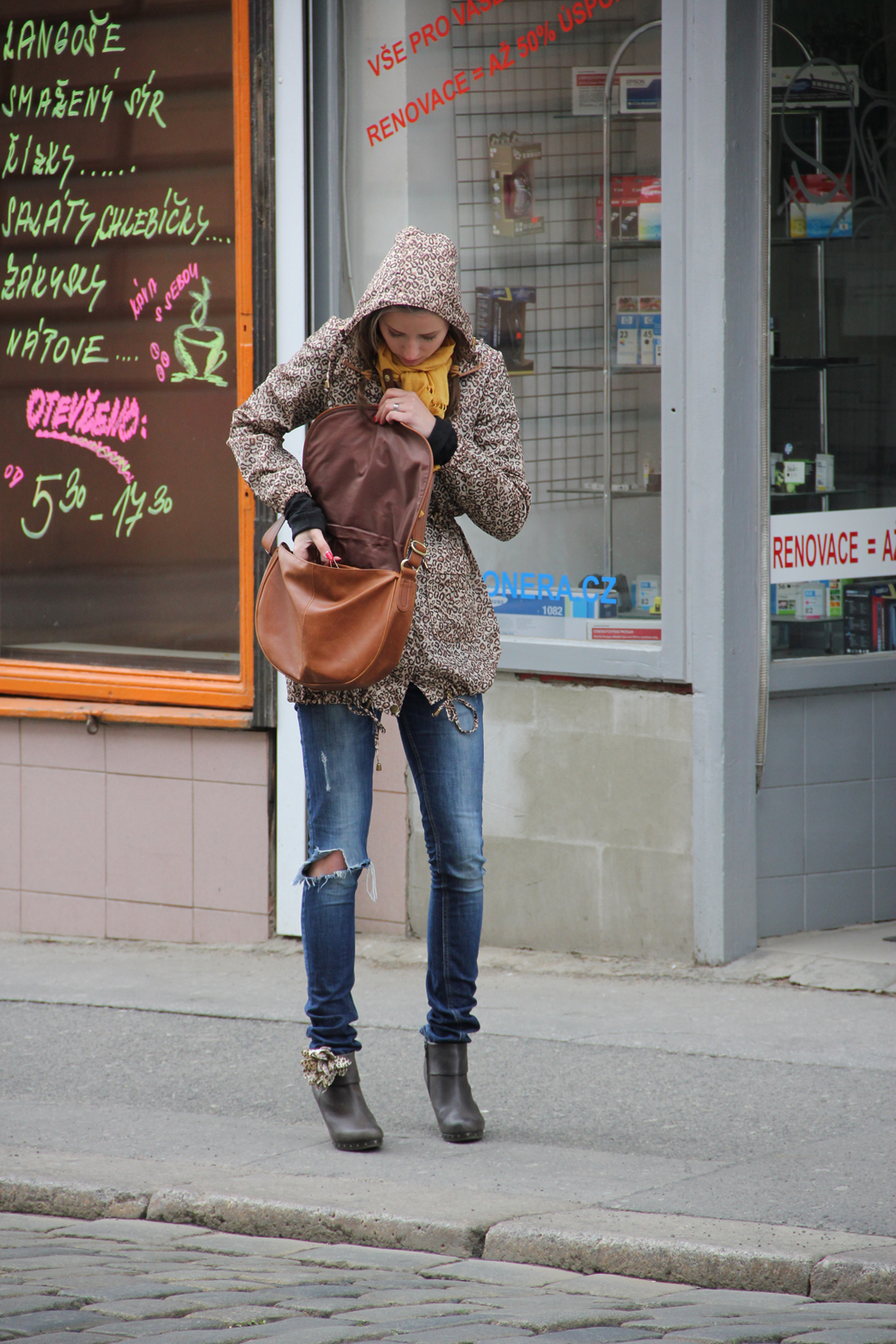 foto:hurry // raincoat/mimibazar,scarf/??,jeans/zara,boots/Baťa,bag/HM,brooch/HM